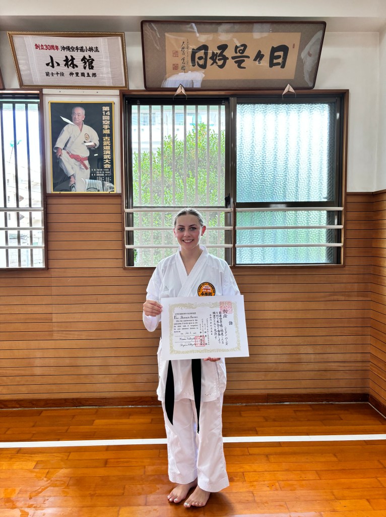 Has trained in Okinawa, Japan in 2019 and 2024 with the Grand Master of Shorin-Ryu Shorinkan